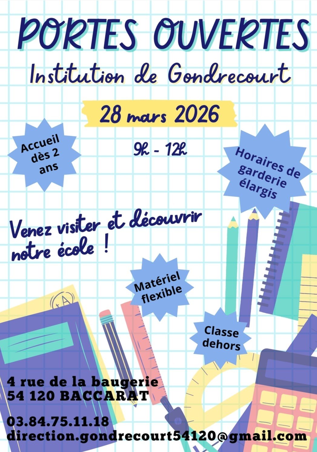 L’école privée de Gondrecourt vous ouvre ses portes pour une journée de découverte et d’échanges, le SAMEDI 28 MARS (9H - 12H)